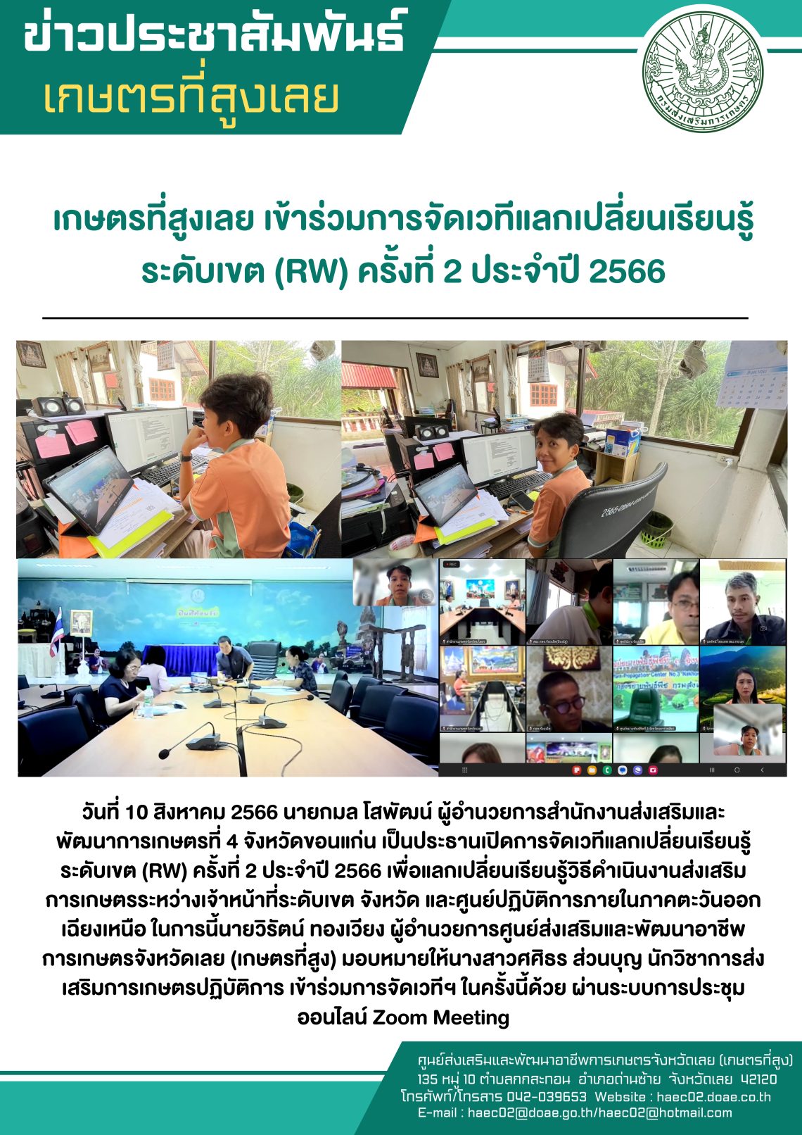 เกษตรที่สูงเลย เข้าร่วมการจัดเวทีแลกเปลี่ยนเรียนรู้ ระดับเขต (RW) ครั้งที่ 2 ประจำปี 2566